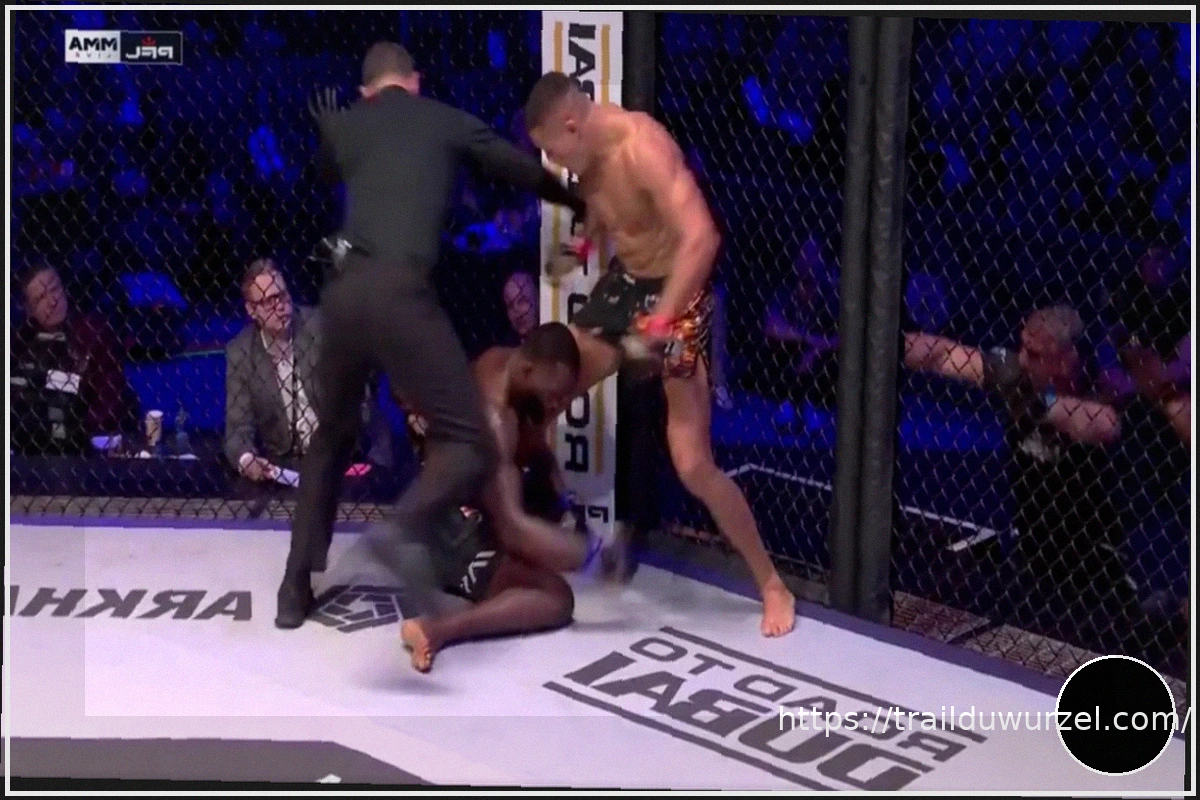 Malgré son manque de succès précédent en lutte, Edwards a persisté avec des tentatives d’amenée au sol au troisième round. Cette stratégie a failli le mener à une autre guillotine serrée. Après s’être défendu, Edwards a tenté une nouvelle amenée au sol, exposant involontairement sa tête. Van Steenis a exploité cette vulnérabilité, déclenchant une rafale de coups de coude courts et puissants contre la cage, qui a laissé Edwards inconscient.